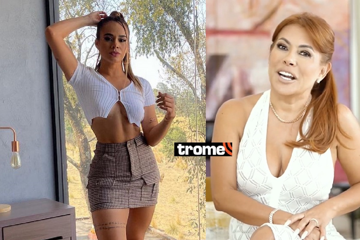 EN SU CARA. Jossmery Toledo y Magaly Medina tuvieron un encuentro en el set de la ‘urraca’ y pasaron un hilarante momento luego que la presentadora le preguntara por sus “coquitos” en el abdomen.
