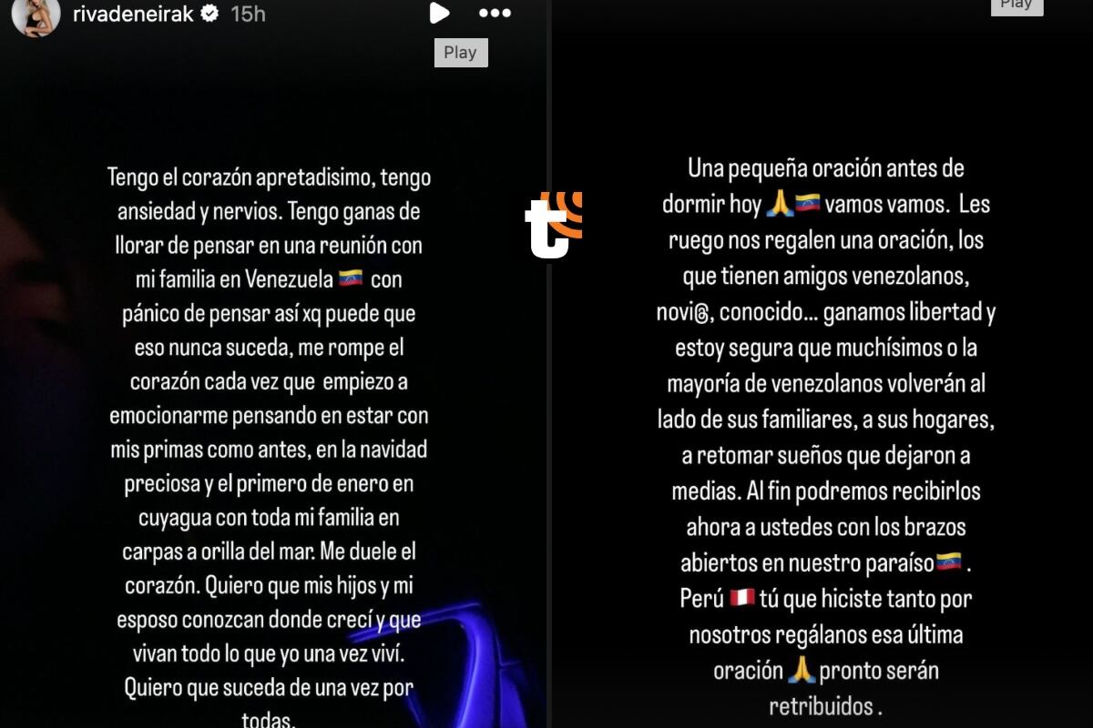 “Tengo ganas de llorar de pensar en una reunión con mi familia en Venezuela con pánico de pensar así porque puede que eso nunca suceda, me rompe el corazón cada vez que empiezo a emocionarme pensando en estar con mis primas como antes, en la navidad preciosa y el primero de enero en cuyagua con toda mi familia en carpas a orilla del mar. Me duele el corazón. Quiero que mis hijos y mi esposo conozcan donde crecí y que vivan todo lo que yo una vez viví. Quiero que suceda de una vez por todas”, sentenció.