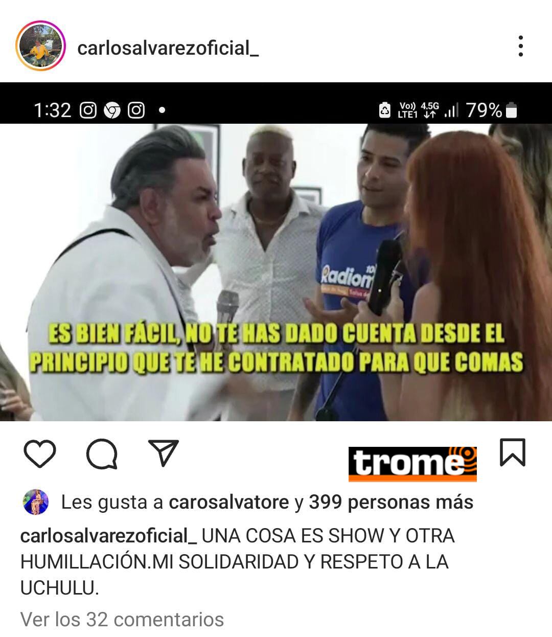 Saca cara por ella. Carlos Álvarez se sumó a la ola de críticas que reciben Andrés Hurtado y Carlos Cacho tras humillar a ‘La Uchulú' en ‘La casa de Magaly’, tal como se vio el lunes 28 de agosto en ‘Magaly TV, la firme’.