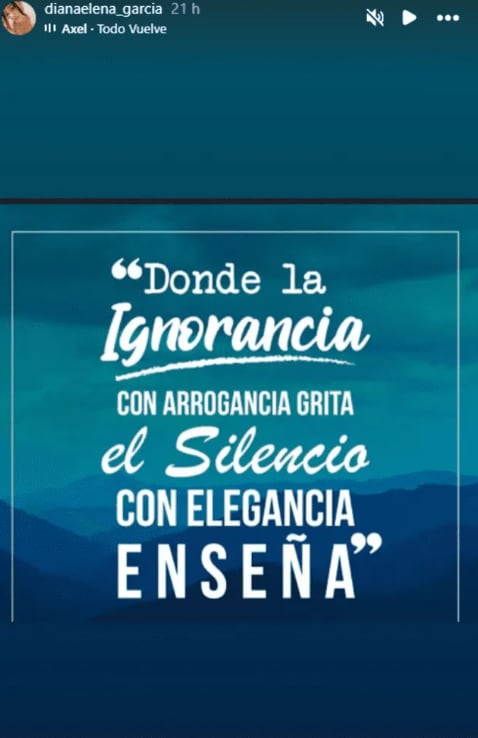“Donde la ignorancia con arrogancia grita el silencio con elegancia, enseña”, se lee en la publicación de la esposa de Luigui. Cabe destacar que la joven es sobrina de Ricky Trevitazzo.