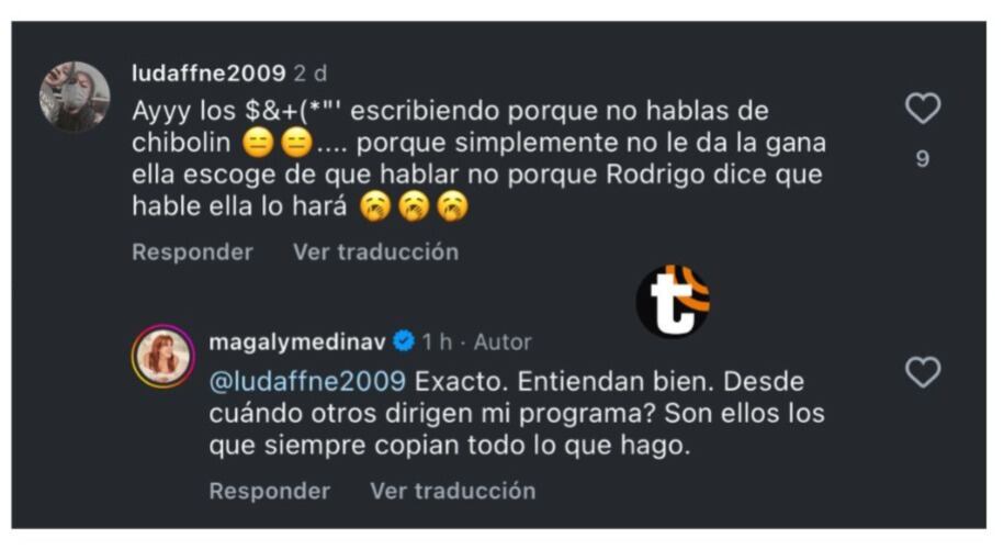 A lo que Magaly Medina le responde y da la razón, poniendo en claro que ella es la que elige la pauta de su programa: “Exacto. Entiendan bien ¿Desde cuándo otros dirigen mi programa?”.