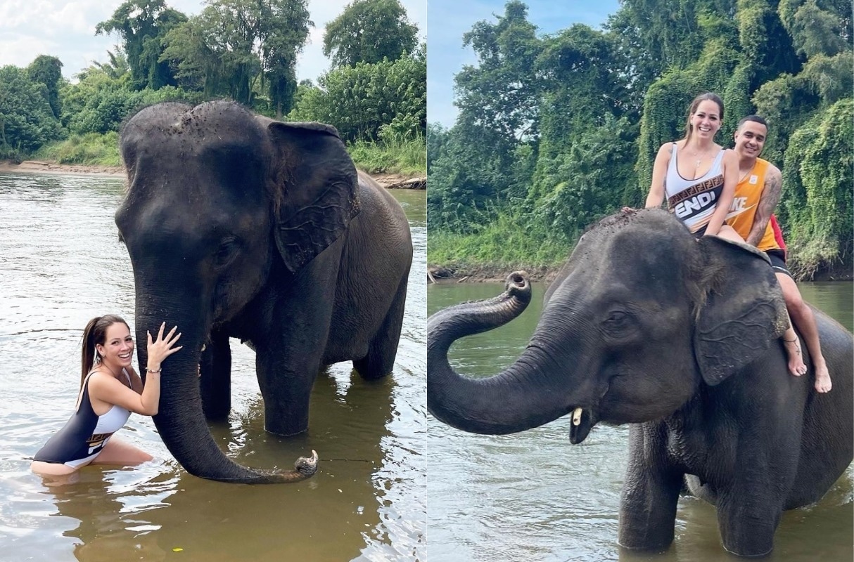 En una reciente publicación en su cuenta oficial de Instagram, Klug sorprendió a sus fans al aparecer tomando un baño al lado de elefantes en un santuario de Bangkok, capital de Tailandia.