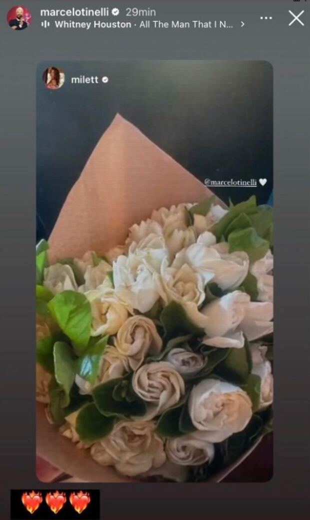 Por su parte, Marcelo Tinelli también reposteó la fotografía de las flores con tres corazones rojos encendidos en fuego, lo que demostraría que está más enamorado que nunca.