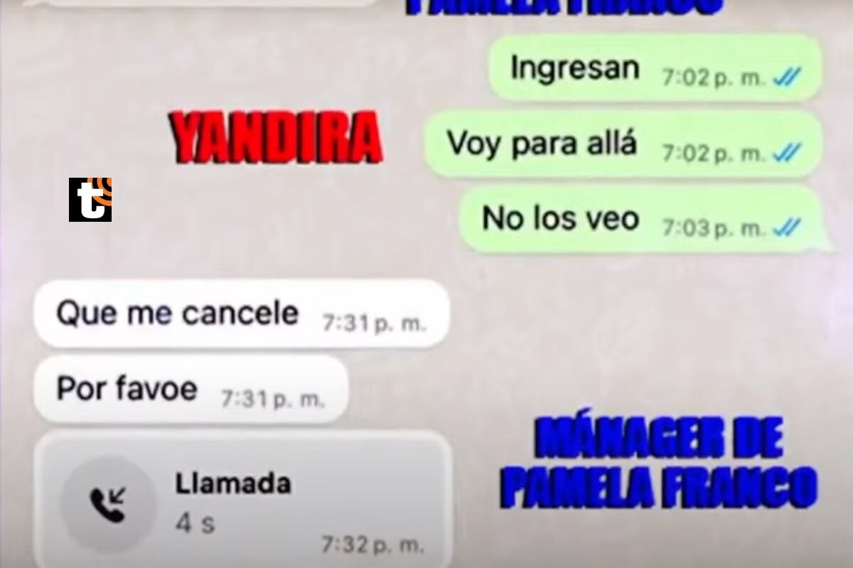 En los mensajes, que mostró a América Hoy, se puede ver que al llegar al evento, Pamela Franco no subió inmediatamente y esperó a que se cancele el restante de los 30 mil soles.