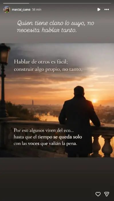 A través de una historia en Instagram, Marcial Cueva dejó un contundente mensaje que varios han interpretado como una fuerte indirecta para Pamela López.