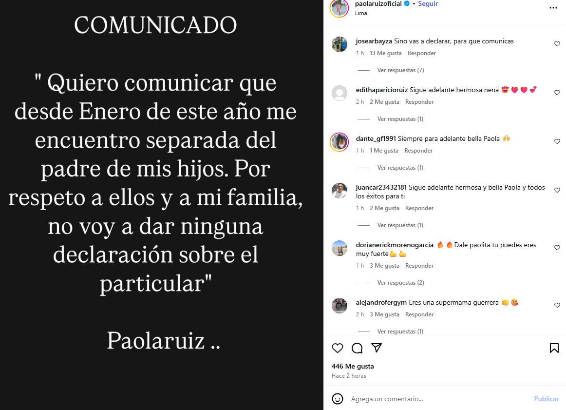 A través de un comunicado publicado en su cuenta de Instagram, la exvedette informó que se encuentra separada del padre de sus dos hijos desde inicios de este año.