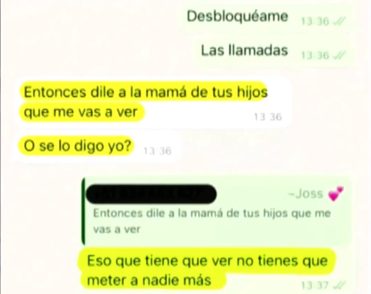 “¿Por qué no contestas? Te estoy llamando diez mil veces. Te crees pendejo. (…) Entonces dile a la mamá de tus hijos que me vas a ver ¿o se lo digo yo?”, se lee.