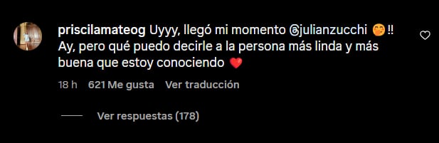 En la misma publicación de Julián, apareció el comentario de Priscila Mateo, reconociendo que “es la persona más linda”.