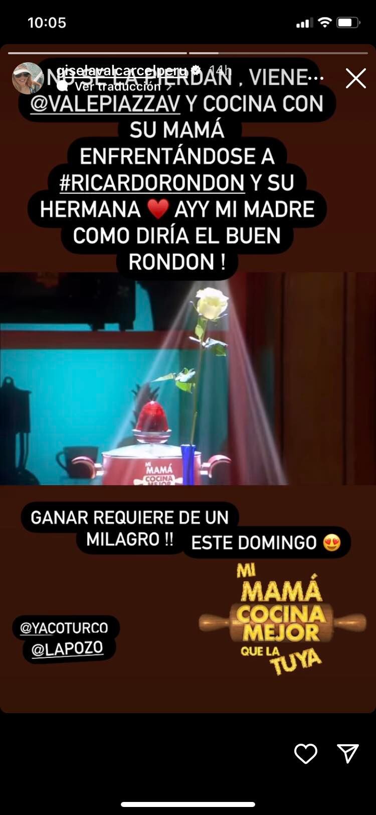 “No se lo pierdan. Viene Valeria Piazza y cocina con su mamá enfrentandose a Ricardo Rondón y su germana. Ay mi madre como diría el buen Rondón. Ganar requiere de un milagro”, escribió la madre de Ethel Pozo.
