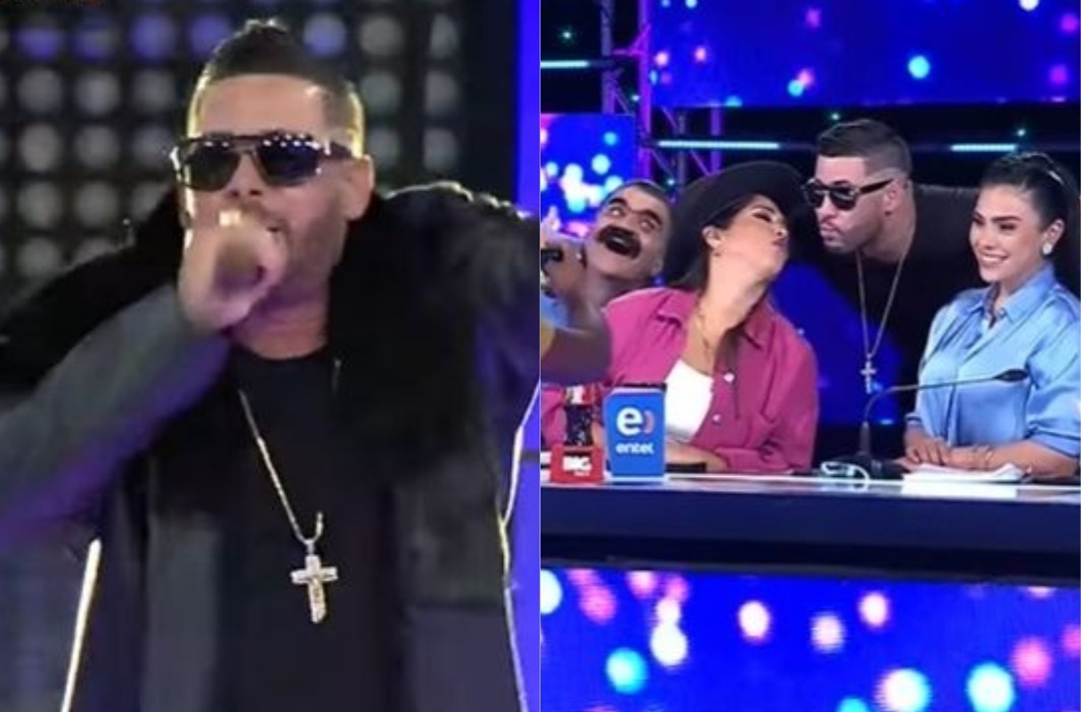 Antes de retirarse del escenario, Los integrantes del jurado posaron junto a R.K.M para una foto y en ese momento el reguetonero le robó -nuevamente- un ‘piquito’ a la integrante del jurado, ante la sorpresa de todos.