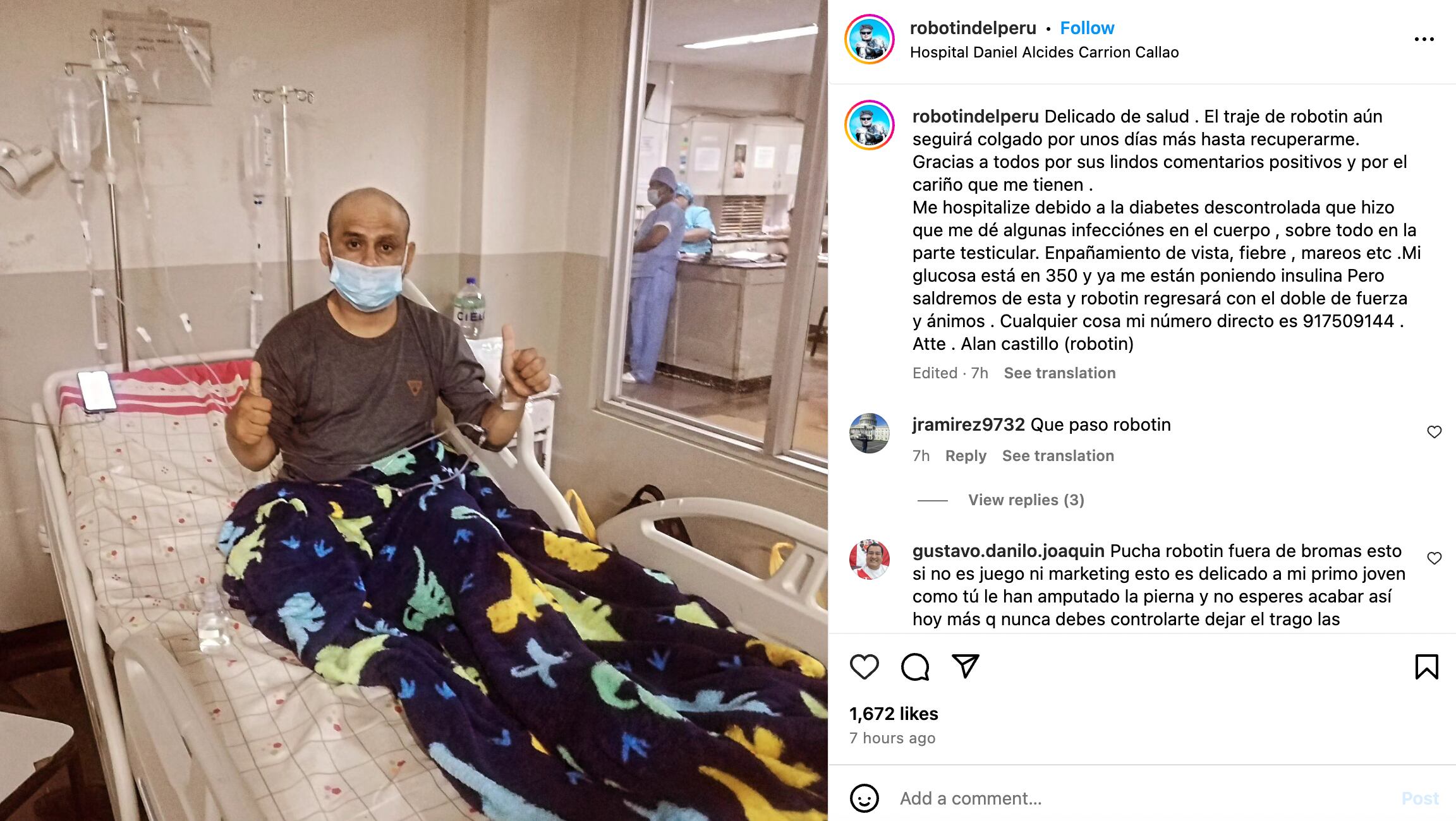 MUCHA FUERZAAA. Alan Castillo, el popular Robotín, dio a conocer que fue hospitalizado de emergencia debido a una infección por la diabetes descontrolada. El cómico reveló que la zona testicular fue la más afectada, además de presentar otros síntomas.
