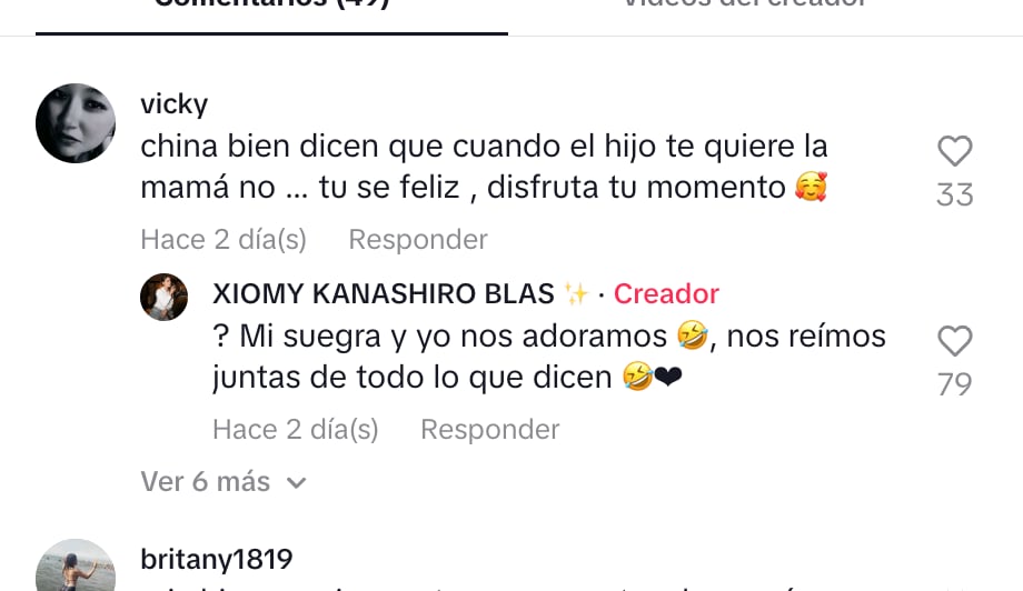 “Bien dicen que cuando el hijo te quiere la mamá no ... tú sé feliz , disfruta tu momento”, le dijo una usuaria en TikTok, a lo que ella respondió.