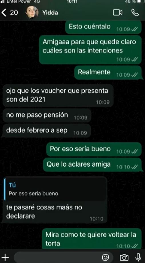 “Ojo que los vouchers que presenta son del 2021, no me pasó pensión desde febrero a septiembre”, afirmó Eslava, quien no dijo más al respecto.