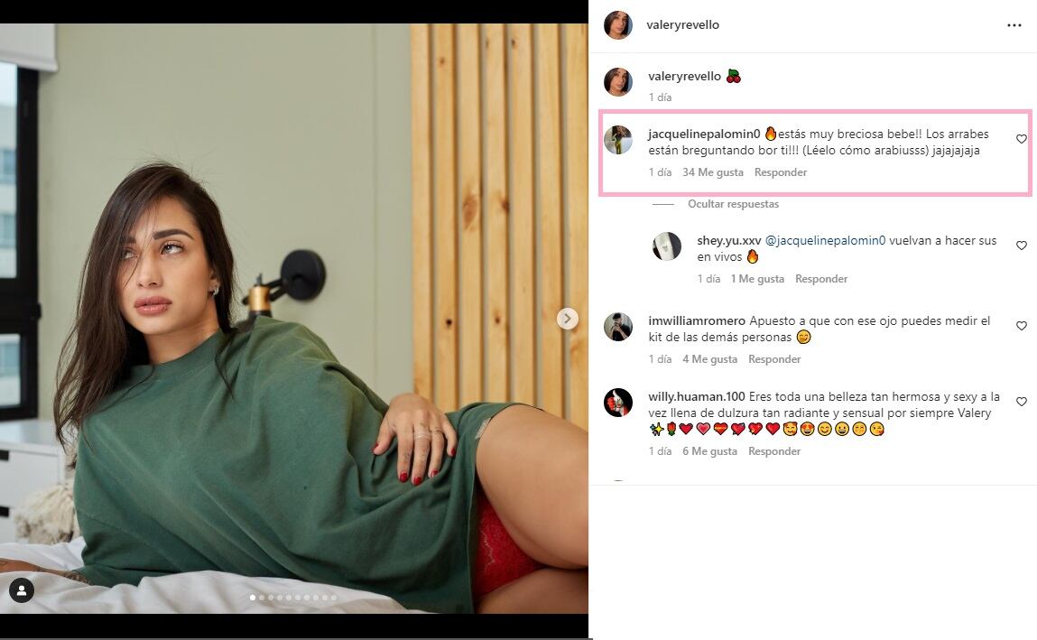 “Estás muy preciosa bebe!! Los árabes están preguntando por ti!!! (Léelo cómo arabiusss) jajajajaja”, comentó Jacqueline Palomino.