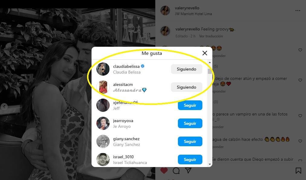 Entre los “me gusta” de la publicación se encuentra también el de las parejas de los futbolistas de la selección peruana, Claudia Díaz esposa de Pedro Gallese y Alexandra Cordero esposa de Yoshimar Yotún, con quienes Valeria Revello tiene una amistad.