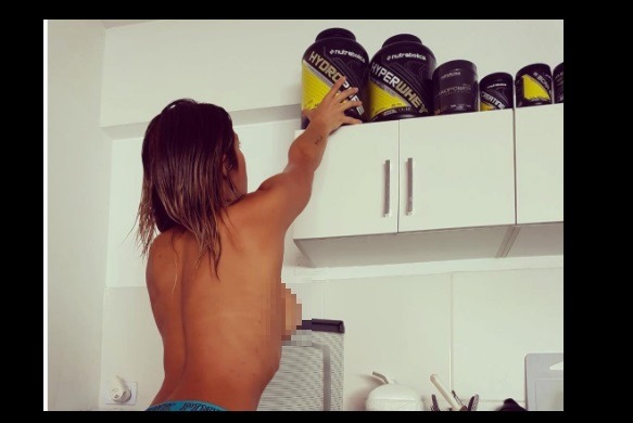 La modelo Xoana González publicó otra de sus sexys fotos en Instagram y sorprendió a sus seguidores. En la imagen se ve a la argentina queriendo agarrar sus proteínas de un repostero alto de la cocina de su casa, pero lo particular de la situación es que sólo lleva una prenda íntima.