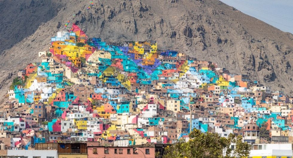 El Cerro San Cristóbal, que está entre los distritos de San juan de Lurigancho y El Rímac, ahora tiene un nuevo ‘rostro’ gracias al primer megamural de chakanas multicolores, que se puede ver a la distancia y simboliza unidad, fortaleza y crecimiento.