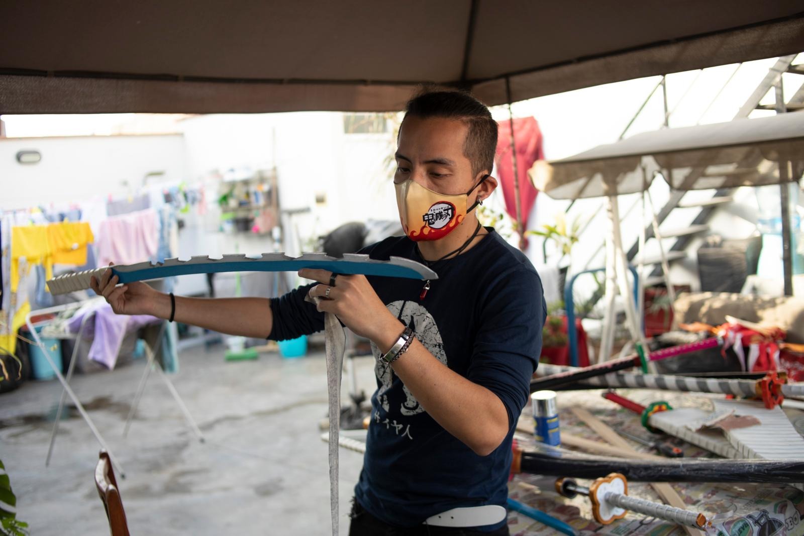 HISTORIAS QUE INSPIRAN. Psicólogo, especialista en reclutamiento laboral y amante de la movida cosplay en nuestro país. Alejandro Ríos García (30) fue más allá de un simple gusto, usó su hobby para emprender y, gracias a su habilidad con las manos, fabrica espadas y armas ornamentales de los más famosos personajes de cómics, manga, anime y DC, en su casa de Independencia.