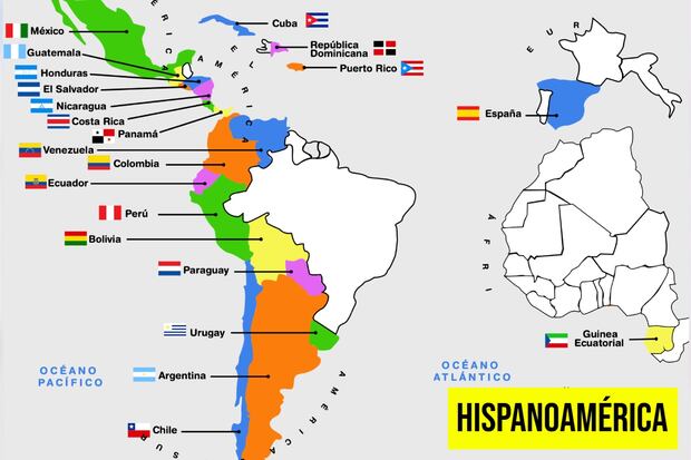 Hispanoamérica está formada por los países americanos donde el español es el idioma que predomina, como sucede con México, Centroamérica (excepto Belice, donde se habla inglés), las grandes Antillas (excepto Haití, donde se habla francés) y todos los países de América del Sur (excepto Brasil, donde se habla portugués; Guyana, cuyo idioma oficial es el inglés; Guayana Francesa, que es un territorio francés de ultramar situado en Sudamérica, donde oficialmente se habla francés; y Surinam, en el que se habla neerlandés (idioma germánico occidental).