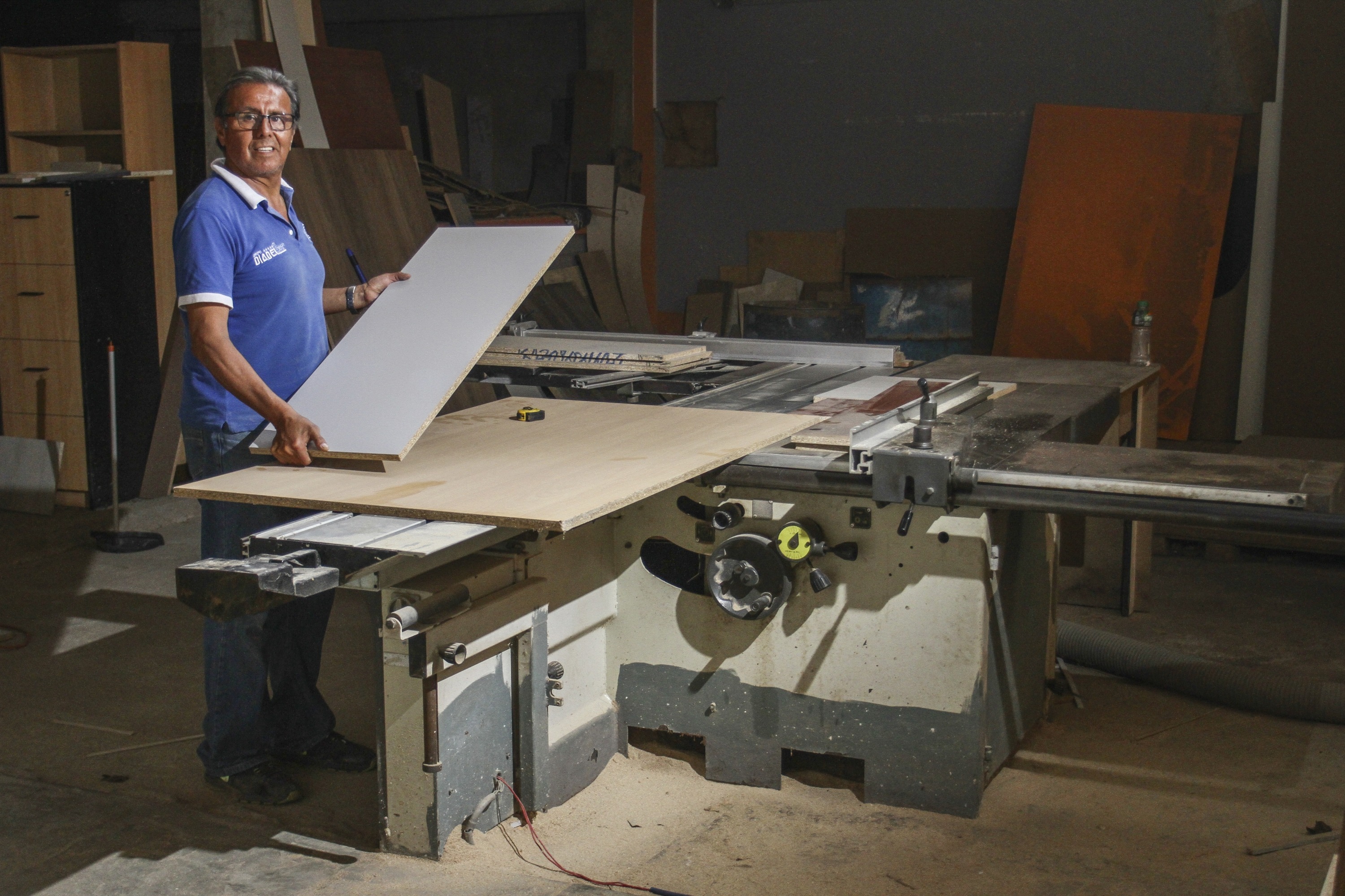 Emprende Trome. Víctor Díaz (63) es uno de los pocos empresarios de Villa El Salvador que trabaja solo. Él mismo diseña, atiende al cliente y corta las grandes planchas de melamine con las que crea todo tipo de muebles.