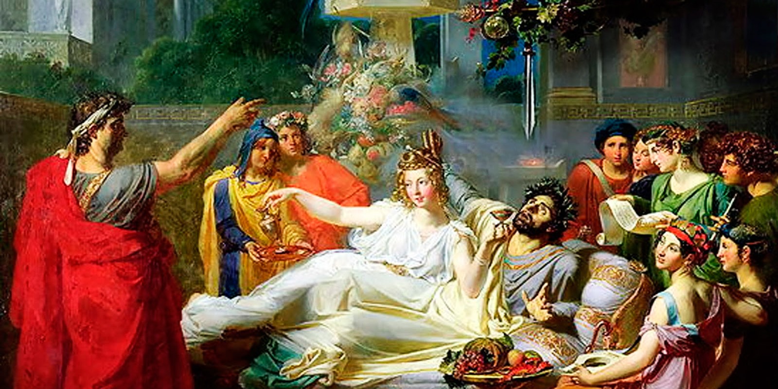 Un día en un festín este le cedió el trono. Damocles se sentó y vio que desde el techo pendía una espada afilada: era el símbolo de la responsabilidad de ejercer un poder tan grande.