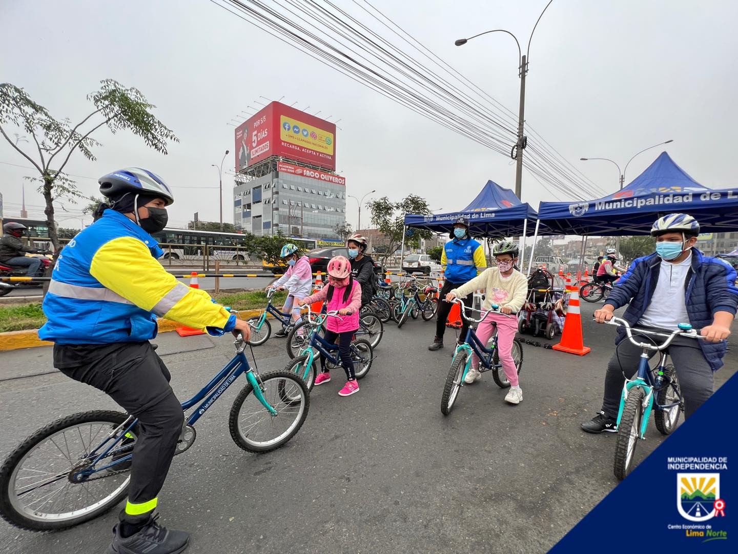 No importó el frío ni el día nublado. Un gran número de niños acompañados de sus padres asistieron a sus clases para aprender a montar bicicleta en Independencia.