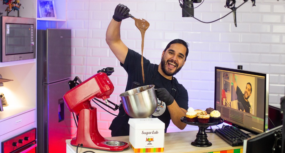 En mi pastelería Sugarlab he acondicionado un espacio para grabarme. Lo hago yo solo y me divierte mucho porque es hacer algo diferente a lo que estoy acostumbrado.