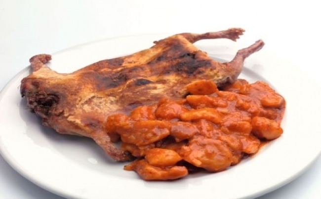 - Aparte, en una sartén a fuego medio caliente dos cucharadas del aceite en el que se frió el cuy y dore los ajíes. Agregue el ajo y fría por cinco minutos. Incorpore el agua de cocción que reservó y la papa. Sazone con sal. Sirva el cuy frito con el picante de papas.