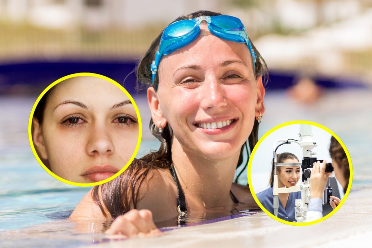 Muchas piscinas son tratadas con productos químicos como cloro que pueden provocar irritación ocular en la superficie del ojo si hay una exposición prolongada.