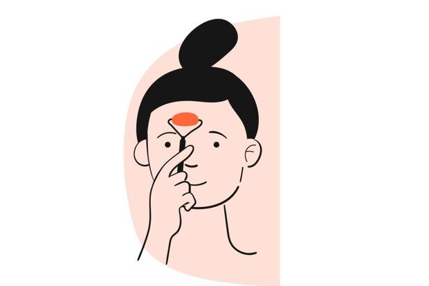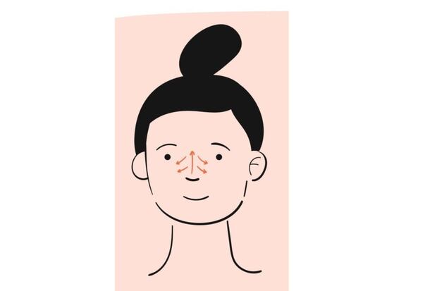 2. En este caso, masajea sobre el hueso nasal, de abajo hacia arriba, y luego a los costados, de adentro hacia afuera. Repite la acción unas tres veces.