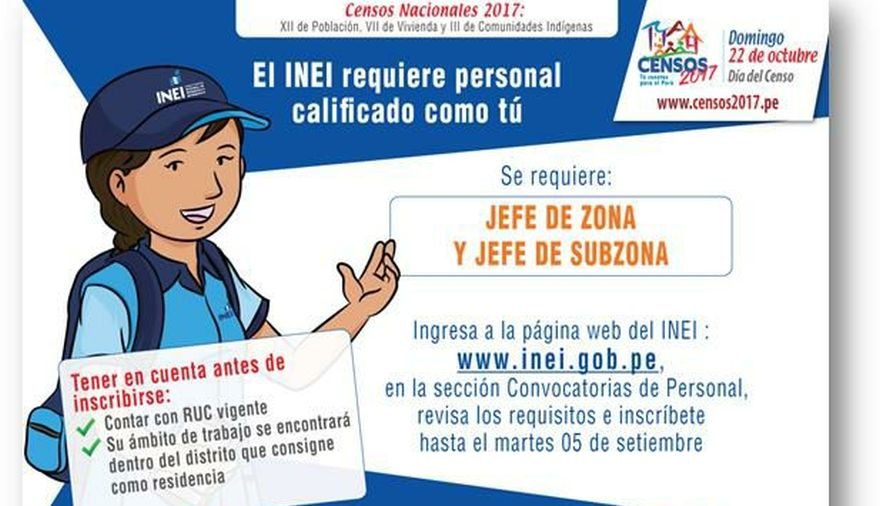 La oportunidad laboral de INEI está dirigida a estudiantes técnicos, egresados técnicos, estudiantes universitarios y egresados universitarios. Estos postulantes tendrán la alternativa de trabajar en el próximo censo poblacional, de vivienda y de comunidades indígenas organizado por la entidad estatal.