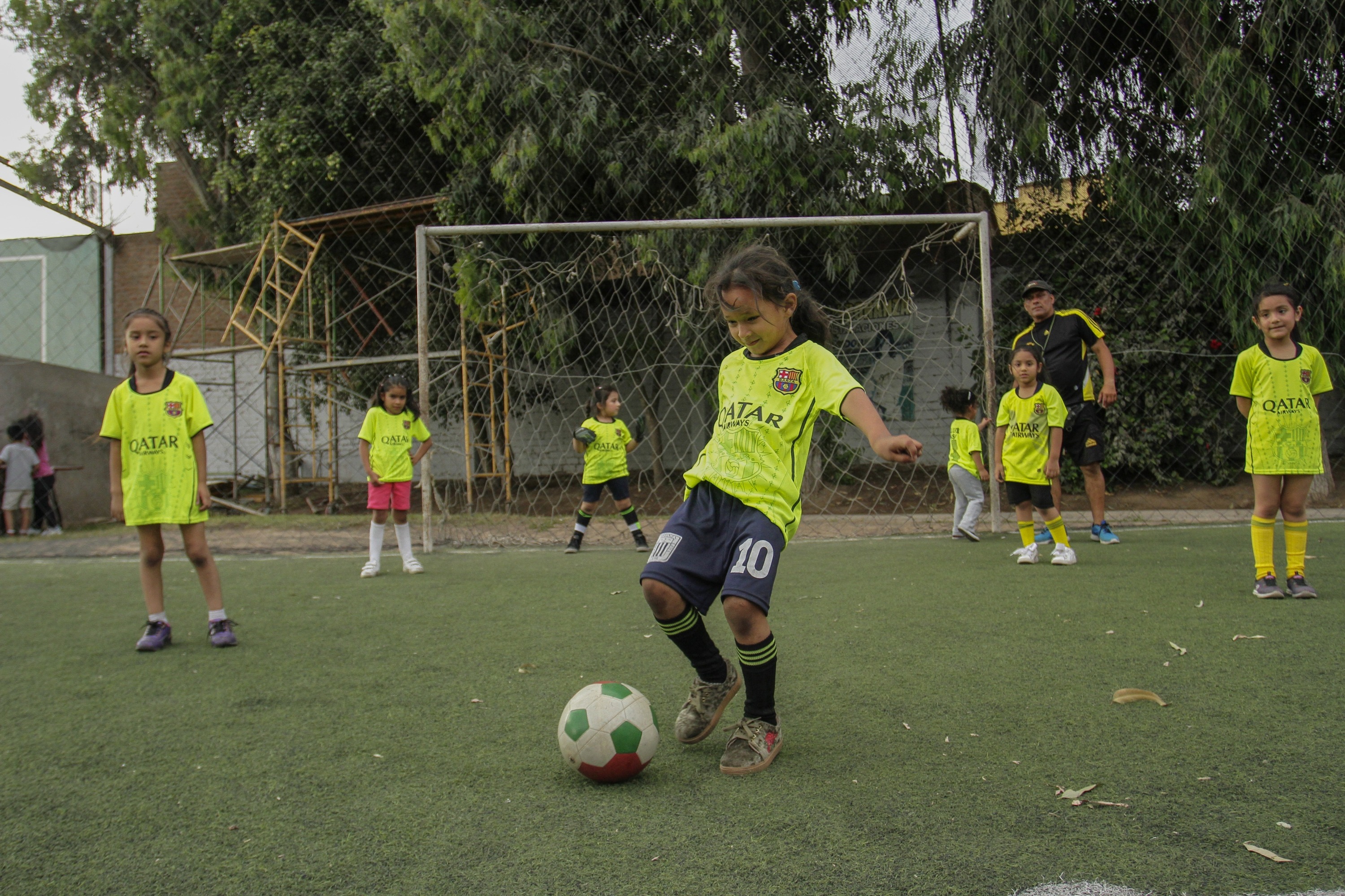 Más allá se prepara Cataleya Ortiz. A sus seis años, ya ha participado en campeonatos de fútbol en su barrio de San Juan de Miraflores. Ser la hija mayor hizo que su padre jugara a patear la pelota con ella. Así nació su gusto por los goles. Ahora, es la primera en llegar a los entrenamientos.