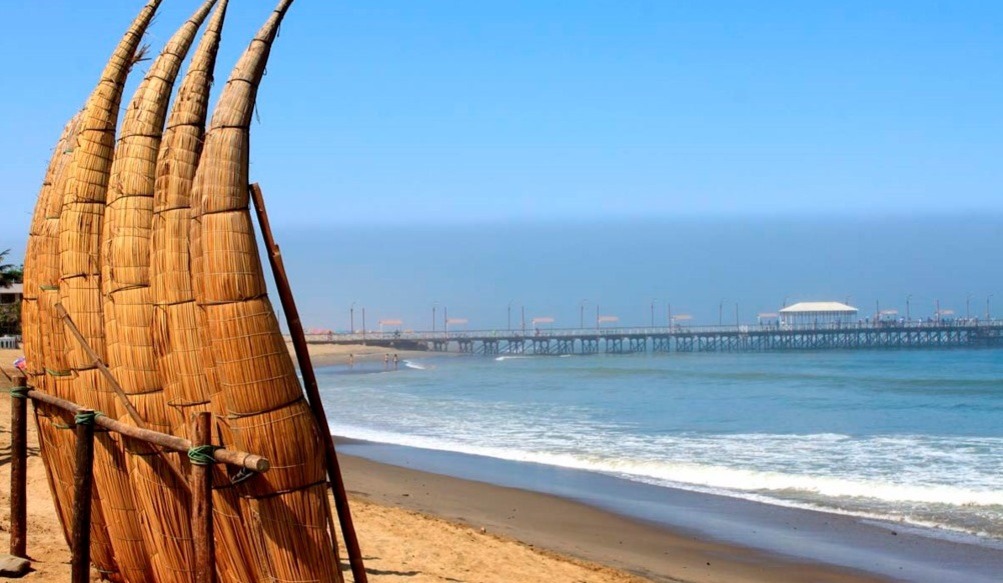Conocida como la “Ciudad de la eterna primavera”, aquí se pueden encontrar buenas playas, deliciosa comida y sobre todo mucha cultura. En este lugar se podrá visitar la playa de Huanchaco, lugar preferido por los surfistas y cuna de los famosos caballitos de totora. Además, se puede hallar la ciudadela de barro más grande de América, Chan Chan. También podrá acudir a lugares arqueológicos como el complejo El Brujo, la Huaca Arco Iris o la Huaca del Sol y la Luna.