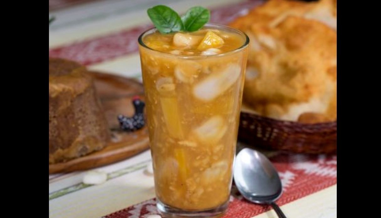 Agrega la fruta, que rompa nuevamente el hervor, rectifica dulzor (si deseas puedes agregar un poquito de azúcar morena). Sirve de preferencia en vasos altos que soporten temperaturas altas o en dulceras.