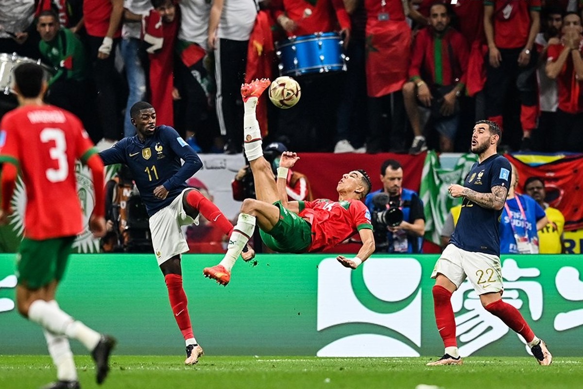 Marruecos se recompuso rápidamente del temprano gol de Theo Hernández. Sin llegar a dominar por completo el juego, los dirigidos por Walid Regragui se las arreglaron para llevar peligro al área de Francia. La jugada más clara llegó con la chalaca de Jawad El Yamiq.