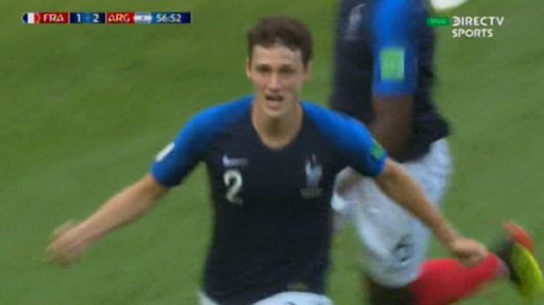 Paso a los 57' del segundo tiempo. Benjamin Pavard encontró un pelota suelta en campo de Argentina y no perdonó para marcar el 2-2 para Francia.