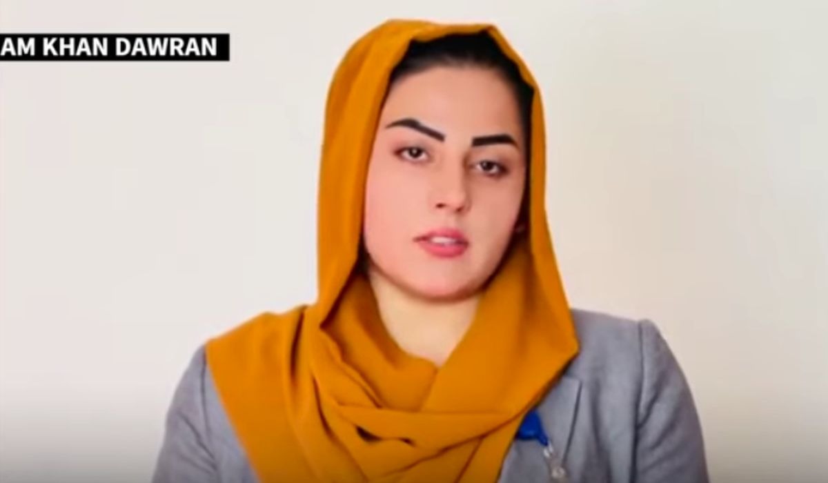 Vistiendo un hiyab y mostrando su tarjeta de periodista, la presentadora de noticias Shabnam Dawran afirmó “nuestras vidas están amenazadas”, en el videoclip.