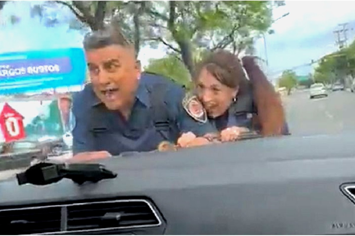 Gran indignación en Argentina ha causado un video en el que un conductor arrastra con su vehículo a dos policías por unos 50 metros, pese a que le ordenaron detener su marcha.