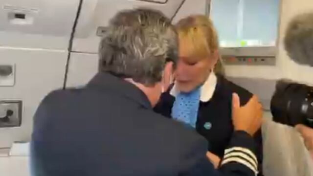 Mónica Faggiolani, quien forma parte de la aerolínea hace más de 40 años, fue captada en un video siendo consolada por uno de los pilotos. “No lo puedo creer”, decía la auxiliar tras tocar suelo argentino.