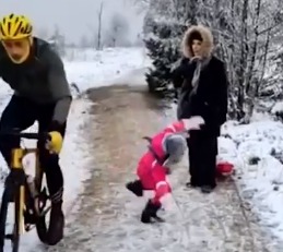 Aquellas imágenes muestran a Neia caminando por la nieve hasta que apareció el hombre -todavía sin identificar- y atropella con su bicicleta a la niña en un parque de Bélgica, revela The Sun.