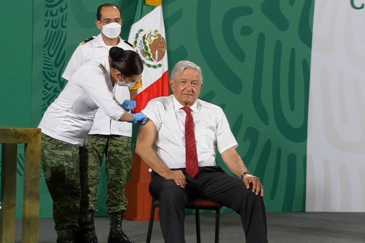 López Obrador, hipertenso y reacio a llevar cubrebocas en público, recibió la primera dosis el 20 de abril también durante una rueda de prensa.