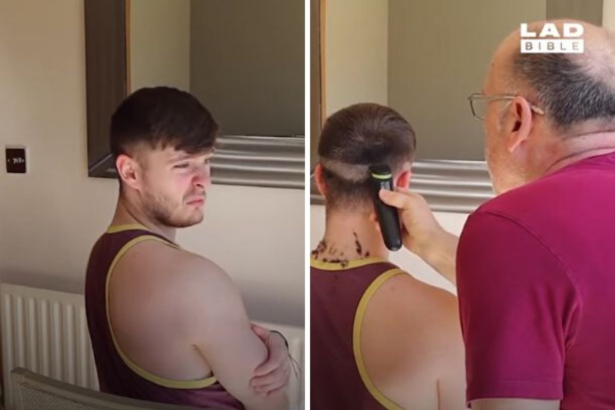 Tras ello, cambia los peines y corta el cabello de su hijo con mucha paciencia, sin imaginar que todo saldría como lo habían planeado. El joven también se quitó la barba y mostró el resultado a la cámara.