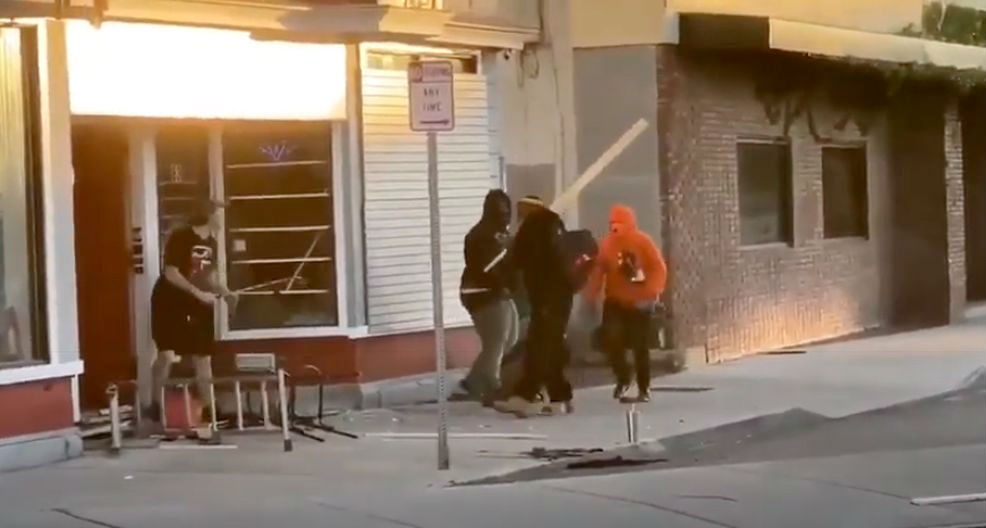 Los hechos sucedieron en la ciudad de Rochester, en Nueva York, la noche del último sábado. En el video se observa a unos ocho sujetos rompiendo las lunas del ‘Rochester Fire Equipment Company’ en la calle Marshall mientras la dueña sale a suplicarles que paren. En ese momento también sale su esposo, el que es atacado con una barra de madera.