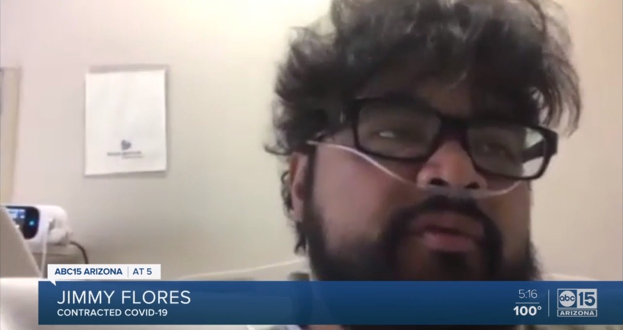 Jimmy Flores es un joven hispano, de 30 años, que contrajo coronavirus en un bar lleno de gente en Arizona (Estados Unidos). En ese momento solo quería divertirse y pasarla bien con sus amigos. Ahora se muestra arrepentido, sobre todo cuando recuerda que estuvo hospitalizado con un tubo para poder respirar.