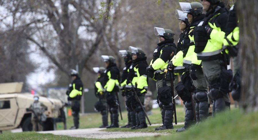 Las protestas frente a la estación policial en Brooklyn Center coincidieron con la tercera semana del juicio contra el exagente Derek Chauvin, acusado de asfixiar y matar al afroamericano George Floyd, el 25 de mayo de 2020.
