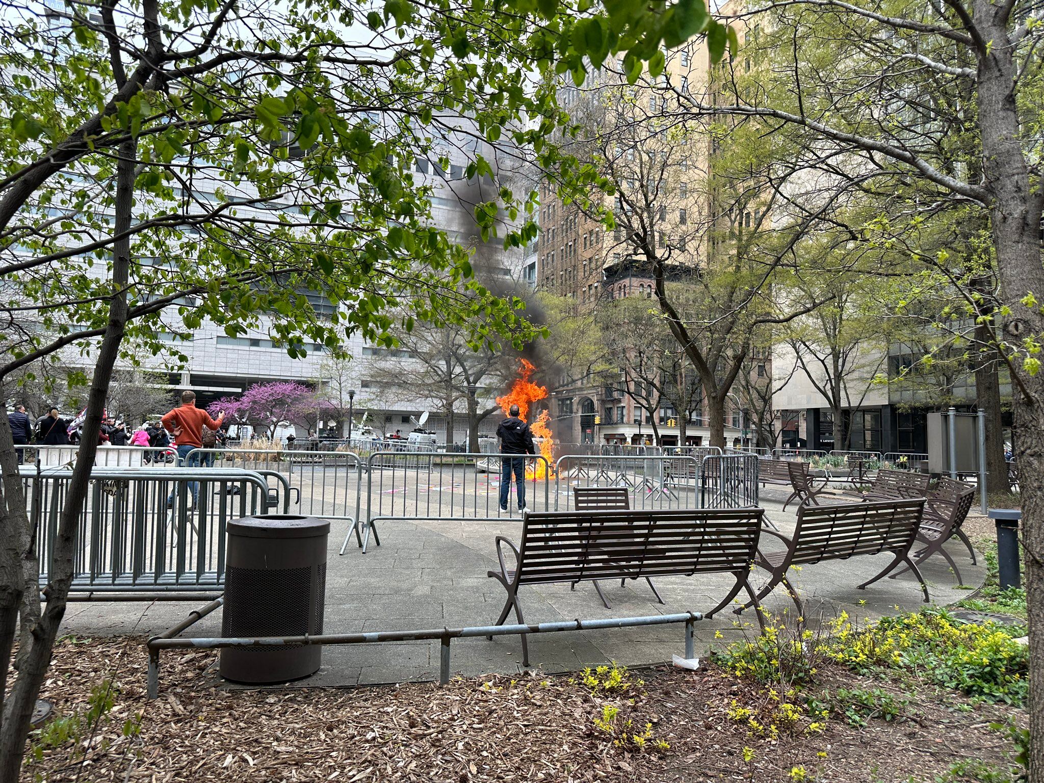 En las afueras del tribunal de Manhattan, en Estados Unidos, donde se juzga a Donald Trump; un individuo prendió fuego a su propio cuerpo. La respuesta policial no fue inmediata, debido a las barricadas instaladas por el juicio mediático contra el expresidente norteamericano.