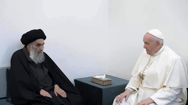 Poco antes, el jefe de 1.300 millones de católicos en el mundo se reunió durante casi una hora con el gran ayatolá Sistani, referencia religiosa para la mayoría de musulmanes chiitas, en uno de los encuentros religiosos más importantes de la historia.