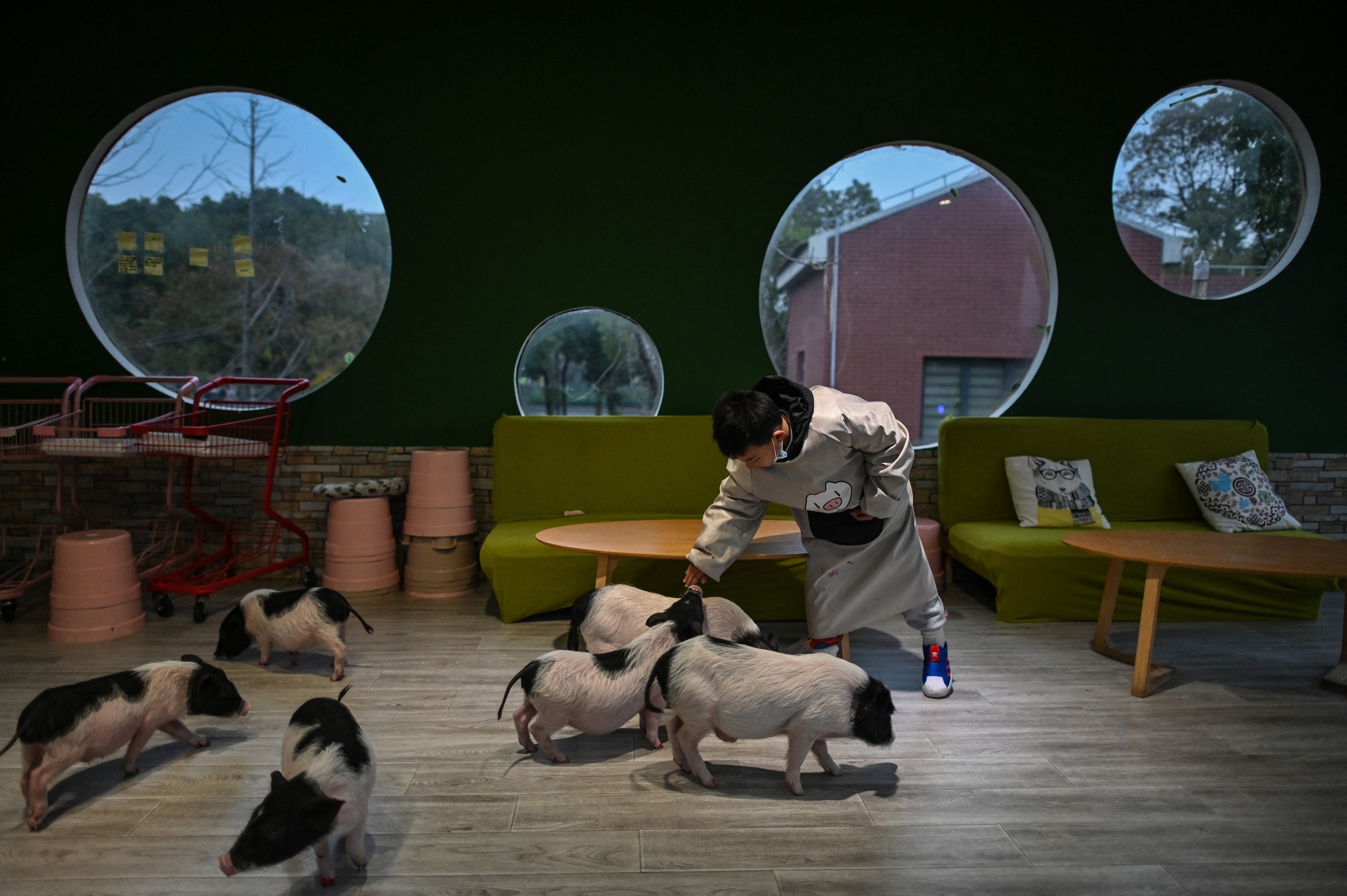 Acariciar un mapache degustando una bebida o jugar con un minicerdo devorando un pastel. Esto es posible en Shanghái, donde aumentan los “cafés con animales” cada vez más exóticos.