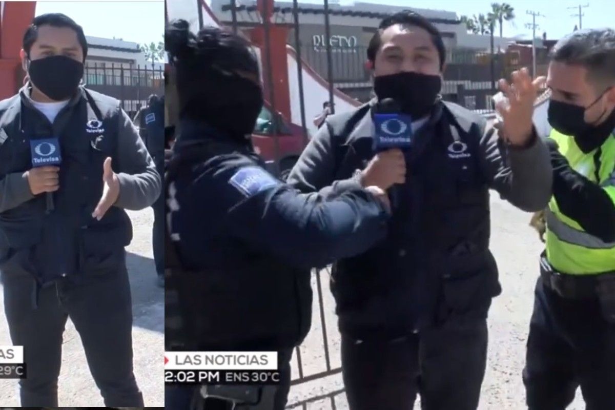 En pleno enlace en directo con su casa televisora, un reportero de Televisa fue intervenido por la policía en vivo, en la ciudad de Tijuana en México. Ocurrió cuando Said Rodríguez realizaba la cobertura de una jornada de vacunación contra el coronavirus, al tratar de ingresar, un policía y la seguridad del local no le permitieron el paso y le colocaron las marrocas.