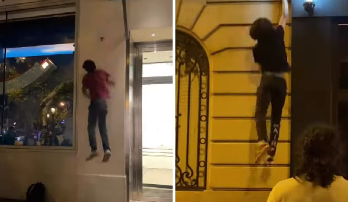 Dentro de las protestas, un grupo de jóvenes atletas de parkour han llamado la atención por apagar luces de grandes letreros comerciales de París.